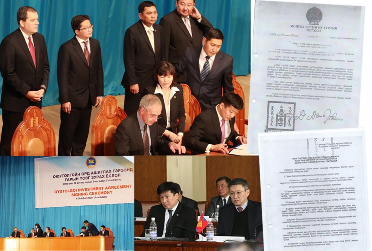 Оюу толгойн зэс, алт, мөнгө, молибден зэрэг ашигт малтмал бүхий ордыг ашиглахаар 2009 оны аравдугаар сарын 6-нд Монгол Улсын Засгийн газар, ИБУИНВУ-ын Лондон хотод бүртгэлтэй “Рио Тинто Интернэшнл Холдингс Лимитед” компани, Монгол Улсад үүсгэн байгуулагдсан “Айвенхоу Майнз Монголия Инк” ХХК, Канадын Юкон мужид бүртгэлтэй “Айвенхоу Майнз Лимитед” нарын байгуулсан 30 жилийн хугацаатай Хөрөнгө оруулалтын гэрээ байгуулсан. Гэвч өнөөдрийг хүртэлх 16 жилийн туршид Монгол Улс энэхүү төслөөс ашиг олоогүй байна. Зөвхөн өр л “олборлож” иржээ. Тиймээс Монголын ард түмэн уг гэрээг шүүмжлэлтэй ханддаг. Гэсэн ч, хөрөнгө оруулагч тал ч, Засгийн газар ч энэ хугацаанд хүссэнээр нь болгодоггүй юм.