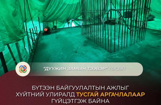 Тодруулбал, цутгалт явагдах хэсгийг бүрэн битүүмжилж, дотор орчны температурыг +10 хэмд тогтвортой барин, бетон 70 хувийн бат бэхдээ хүртэл дулааны арчилгаа хийж буй нь бүтээцийн чанар, тэсвэртэй байдлыг хангахад онцгой ач холбогдолтойг мэргэжилтнүүд онцолж байна. Түүнчлэн төслийн буудал болон тулгуур угсралтын ажил 42.5 хувьтай, тулгуур багануудын суурийн ажил 92 хувийн гүйцэтгэлтэй үргэлжилж байна. Буудлын барилгын каракасын бетон цутгалт 75 хувьд хүрч, хэв хашмал угсралт, арматурын зангилаа, дотор инженерийн холболтын бэлтгэлийн ажлууд зэрэгцэн хийгдэж байна.