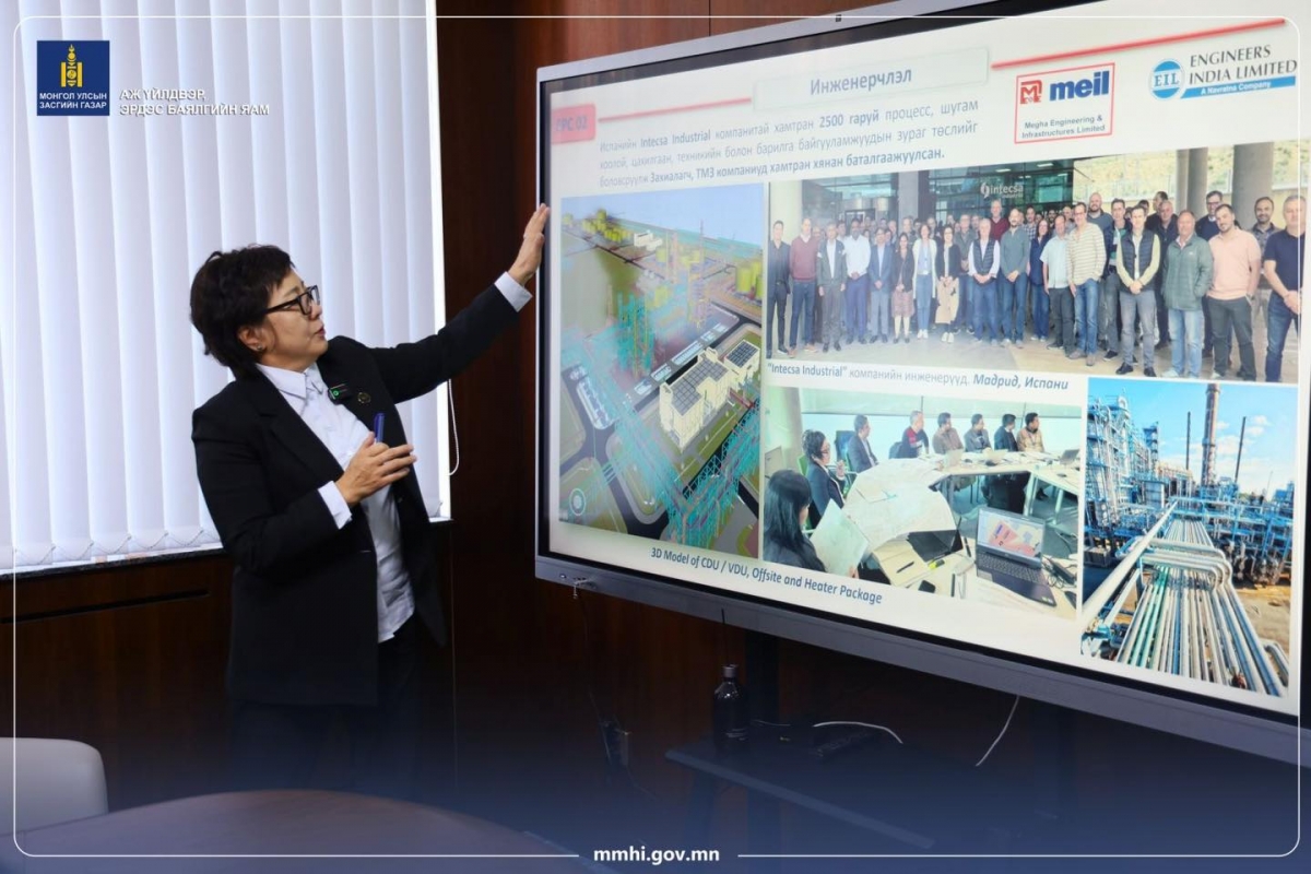 Аж үйлдвэр, эрдэс баялгийн сайд Г.Дамдинням өнөөдөр Монгол Улсад Газрын тос боловсруулах үйлдвэр байгуулах төслийн явцийн талаарх мэдээллийг сонслоо.