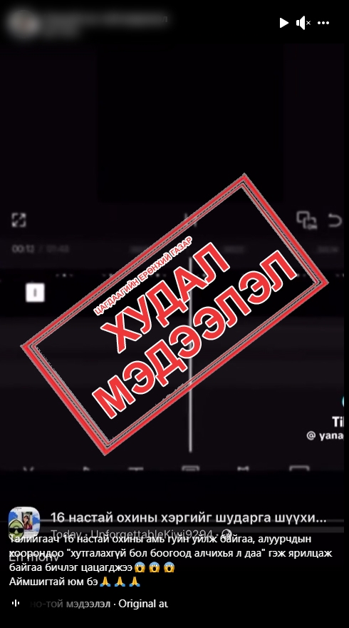 Уг хэрэгтэй холбоотой баримт гэх “ярианы бичлэг“ 2026 оны нэгдүгээр сарын 15-ны өдөр цахим орчинд нийтлэгдсэн