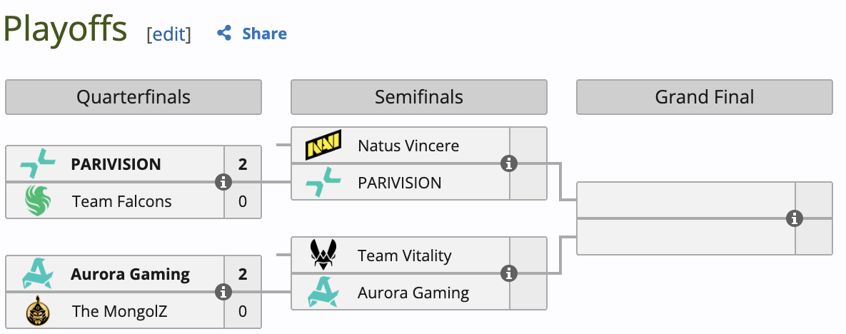 Улмаар доод хүснэгт рүү унаж Хойд Америкийн "Team Liquid" багтай тоглож 2-0 (Ancient 16-14; Mirage 13-10; Nuke 0-0) харьцаагаар, хэсгийн сүүлийн тоглолт буюу шигшээд үлдэхийн төлөө ОХУ-ын "Team Spirit" багтай өнгөрсөн шөнө тоглож 2-0 (Nuke 13-11; Overpass 13-9; Mirage 0-0) харьцаагаар хожиж, шигшээ буюу хасагдах шатанд шалгарлаа.