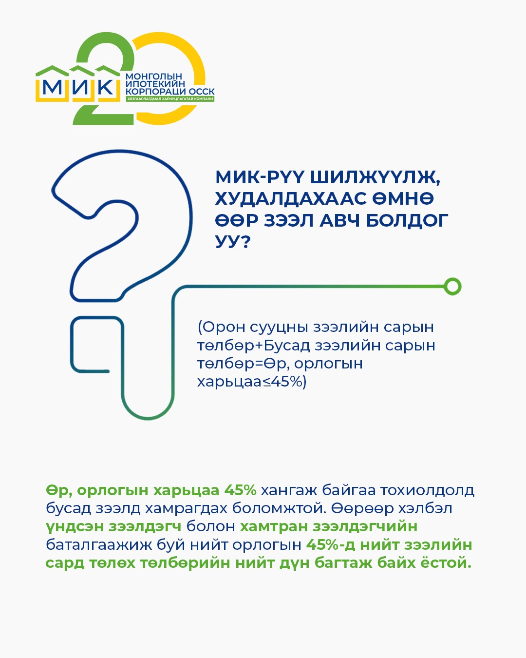 Орон сууцны ипотекийн зээлийн ерөнхий нөхцөл, шалгуур үзүүлэлт