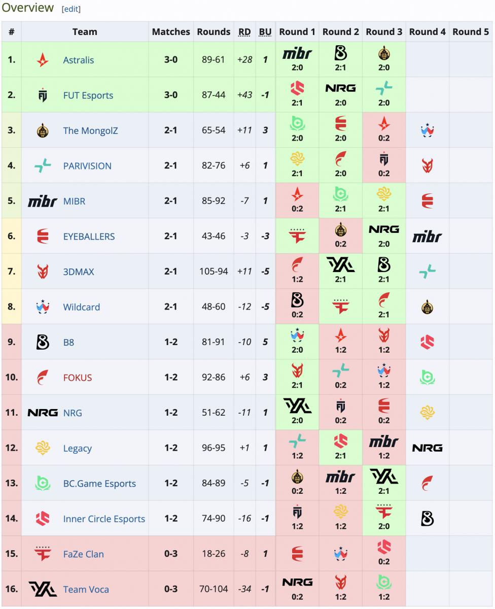 Манай залуусын эхний тоглолтоо Олександр Костыльев "s1mple"-ээр удирдуулсан Португалын "BC.Game Esports" багтай хийж 2-0 (Dust2 13-3; Ancient 13-11; Nuke 0-0) харьцаагаар, Шведын "EYEBALLERS" багтай тоглож 2-0 (Overpass 13-7; Mirage 13-7; Inferno 0-0) харьцаагаар хожиж хоёр хожилтой болсон билээ.