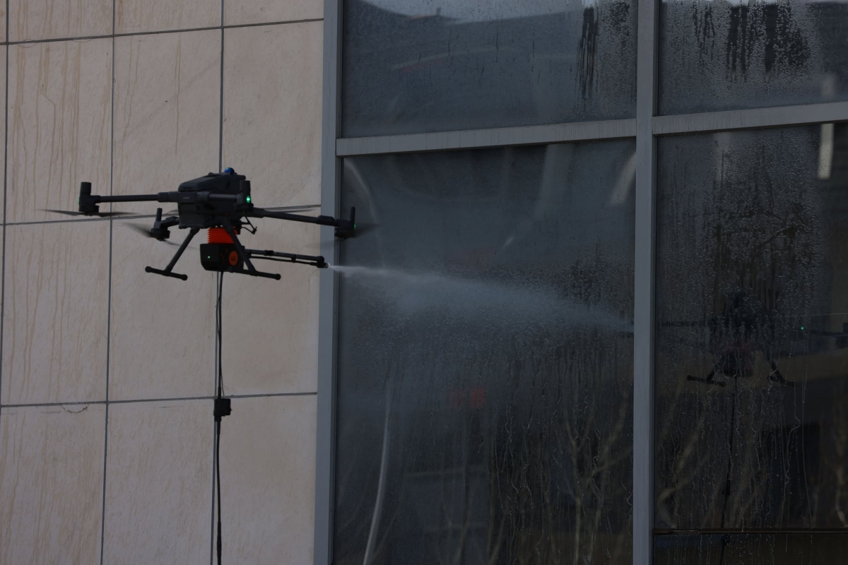 "Хоббизоон” ХХК-ийн Ерөнхий менежер Б. Мөнхсүлд “Барилгын гадна фасад, замын гэрлэн дохио зэрэг өндөрт байрлах хэсгийг угаахад ашиглаж буй DJI Matrice 400 дрон нь 6 кг хүртэлх даацтай. Энэхүү дрон нь нэг цагт 800 ам метр хүртэлх талбайг цэвэрлэх хүчин чадалтай буюу таван хүний нэг өдөрт хийх ажлыг ойролцоогоор хоёр цагийн дотор гүйцэтгэх боломжтой. Мөн холболтын шланкны уртаас шалтгаалан 50-100 метрийн өндөрт ажиллах боломжтой” гэлээ.