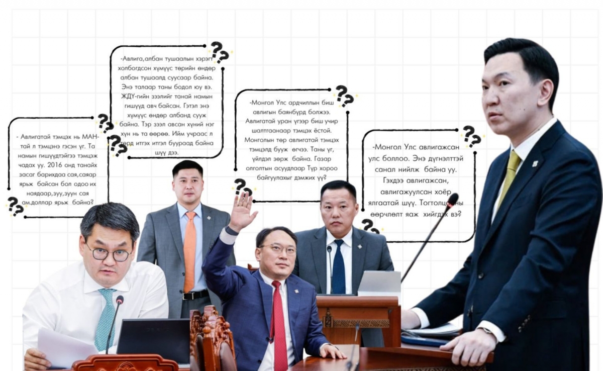 Ерөнхий сайд Н.Учрал өнгөрсөн долоо хоногийн баасан гарагийн чуулганы нэгдсэн хуралдааны үеэр “Авлигажуулсан Монгол” сэдвийн хүрээнд гишүүдийн асуултад хариуллаа. АН-ын дарга, УИХ-ын гишүүн О.Цогтгэрэл, С.Эрдэнэболд, Ө.Шижир, Б.Жаргалан, Ш.Бямбасүрэн нар ямар асуулт тавьж, Гүйцэтгэх засаглалын тэргүүн хэрхэн хариулсныг тоймлон хүргэе.