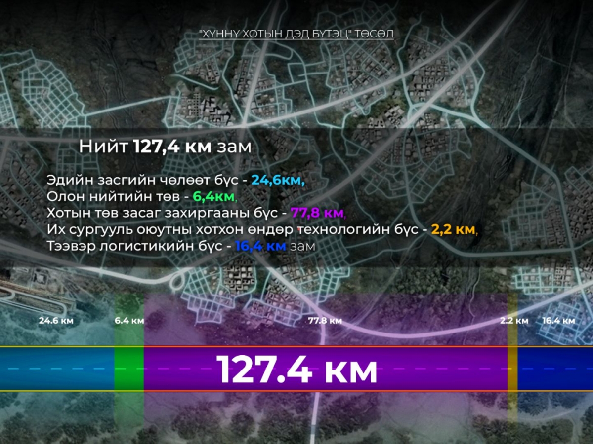 Мөн боловсруулж буй уг авто замын зураг төслийн дагуу эхний ээлжид буюу 2027 онд 286 га талбайг бэлтгэж, 60.6 км хотын авто замын бүтээн байгуулалтыг эхлүүлэхээр төлөвлөөд байна.