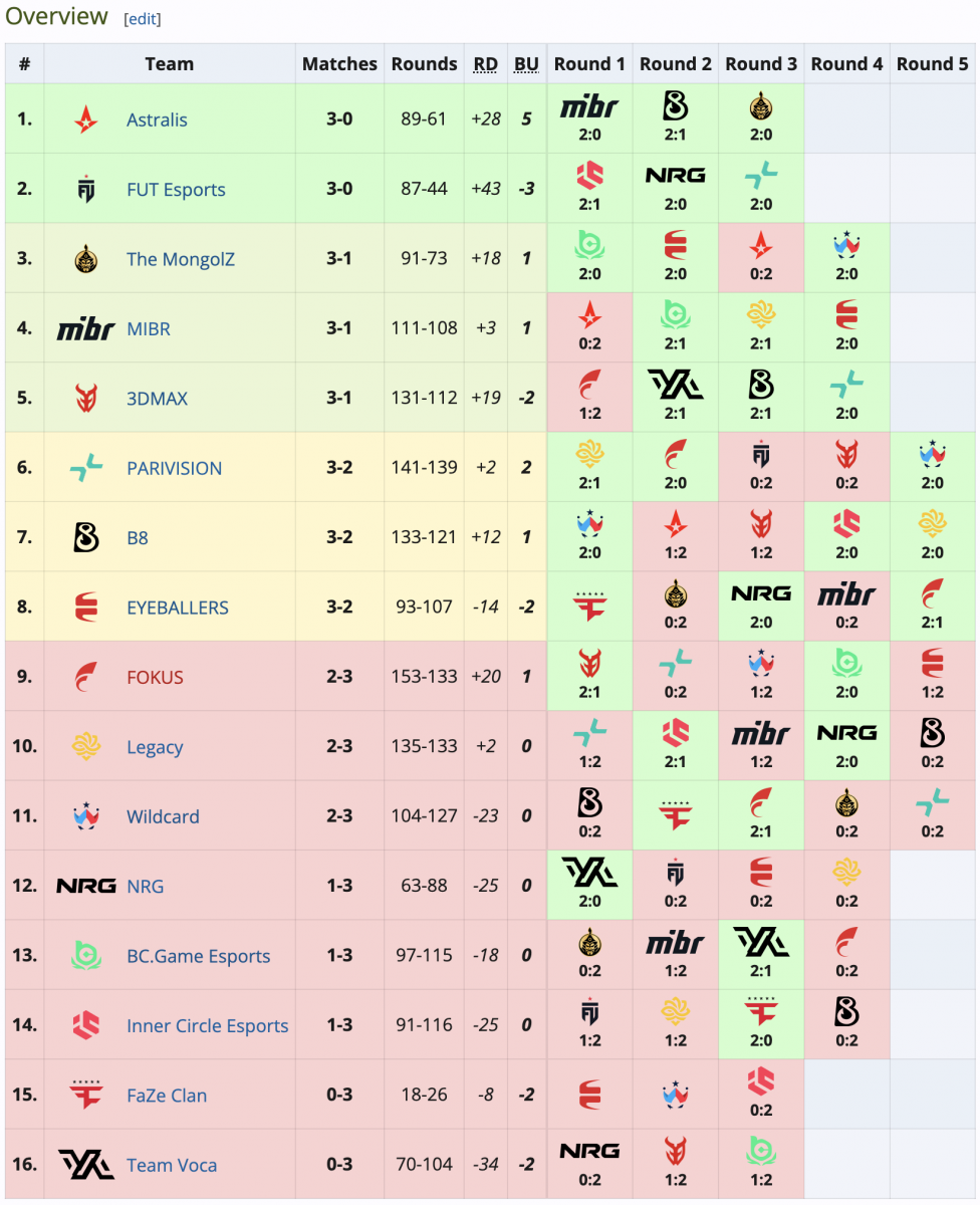 Манай залуусын эхний тоглолтоо Олександр Костыльев "s1mple"-ээр удирдуулсан Португалын "BC.Game Esports" багтай хийж 2-0 (Dust2 13-3; Ancient 13-11; Nuke 0-0) харьцаагаар, Шведын "EYEBALLERS" багтай тоглож 2-0 (Overpass 13-7; Mirage 13-7; Inferno 0-0) харьцаагаар хожиж хоёр хожилтой болж шигшээ шатанд шалгарахын төлөө мөн адил хоёр хожилтой байгаа Данийн "Astralis" багтай тоглож 0-2 (Mirage 4-13; Ancient 9-13; Nuke 0-0) харьцаагаар хожигдсон юм. Улмаар манай залуус хоёр хожилтой нэг хожигдолтой байгаа Хойд Америкийн "Wildcard" багтай тоглож 2-0 (Dust2 13-11; Nuke 13-8; Mirage 0-0) харьцаагаар хожиж шигшээ шатанд шалгарсан билээ.