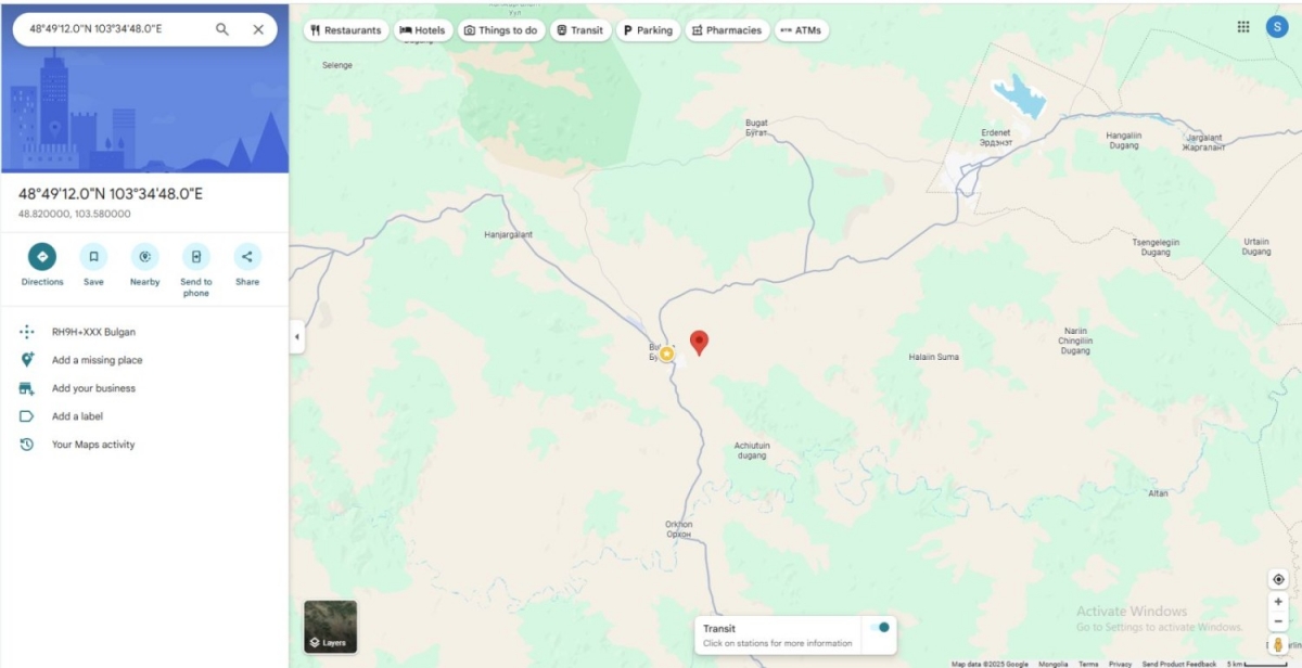 Газар зүйн байршил (Өргөрөг, Уртраг) : 48.82 103.58