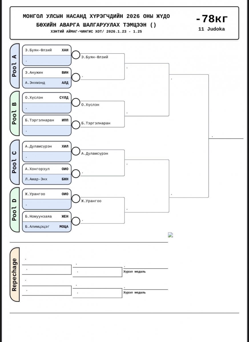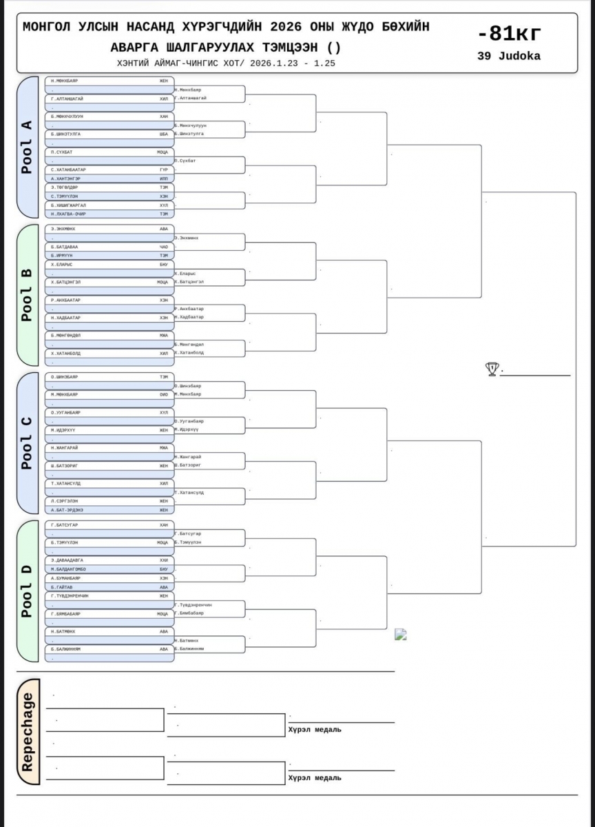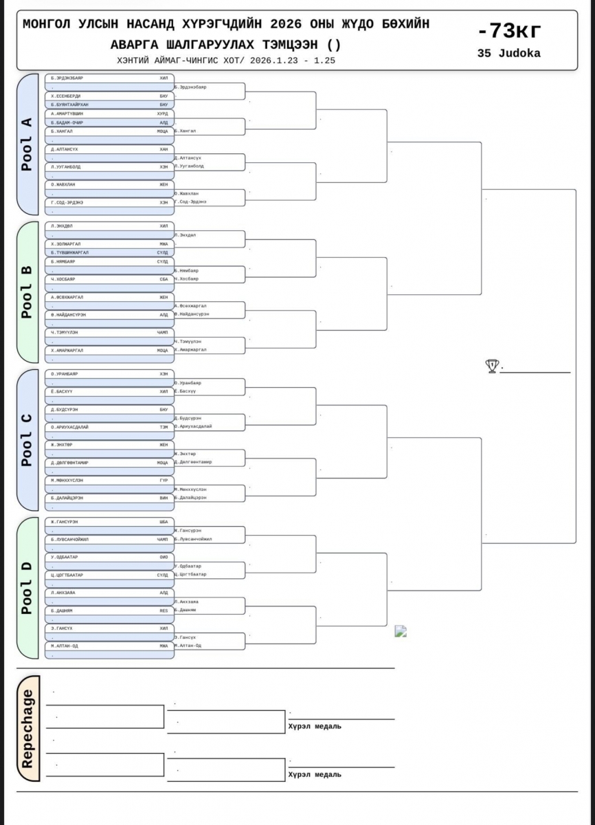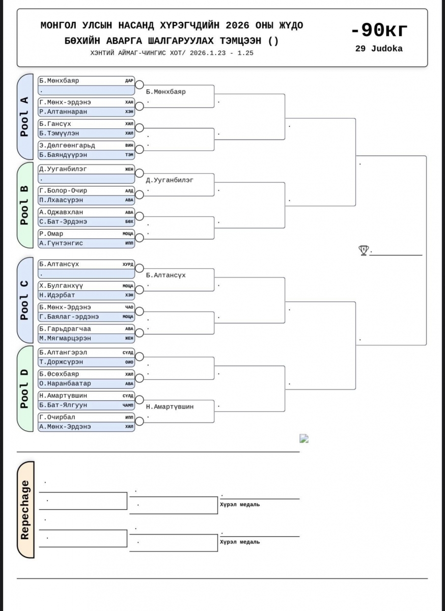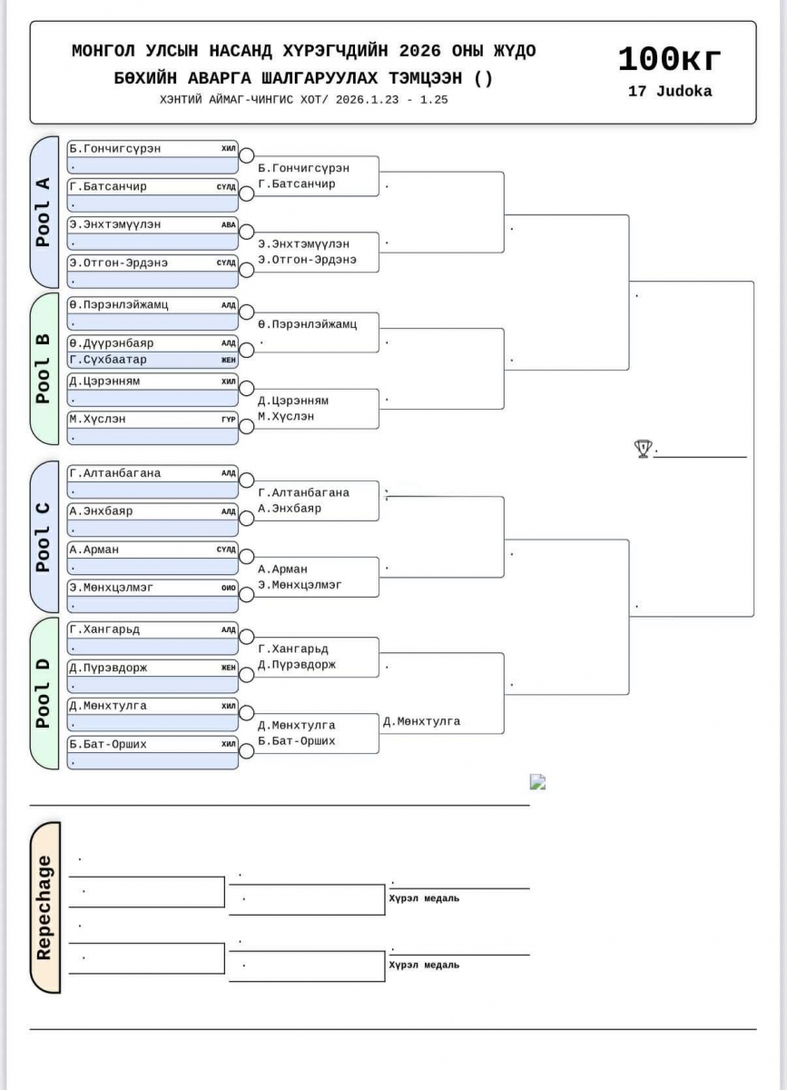 Хэнтий аймгийн Чингис хотод нэгдүгээр сарын 23-26-ны өдрүүдэд жүдо бөхийн насанд хүрэгчдийн улсын аварга шалгаруулах тэмцээн болно. Энэ удаагийн УАШТ-д эрэгтэй 212, эмэгтэй 105, нийт 317 тамирчин оролцохоор мэдүүлгээ өгчээ.