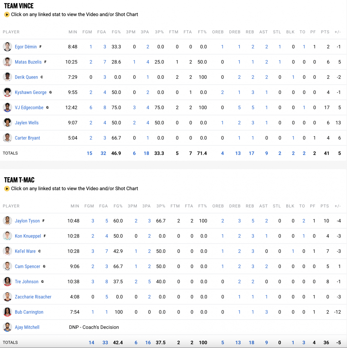 Улмаар хоёр ялалт байгуулсан багууд болох Винс болон Мелогийн багууд хоорондоо тоглож эцсийн мөчид Эджкомб хоёр чөлөөт шидэлтээ амжилттай болгож 25-24 харьцаагаар. Винсийн баг ялалт байгуулж нөгөөдөр болох Бүх оддын тоглолтод оролцож эрхийг авлаа.