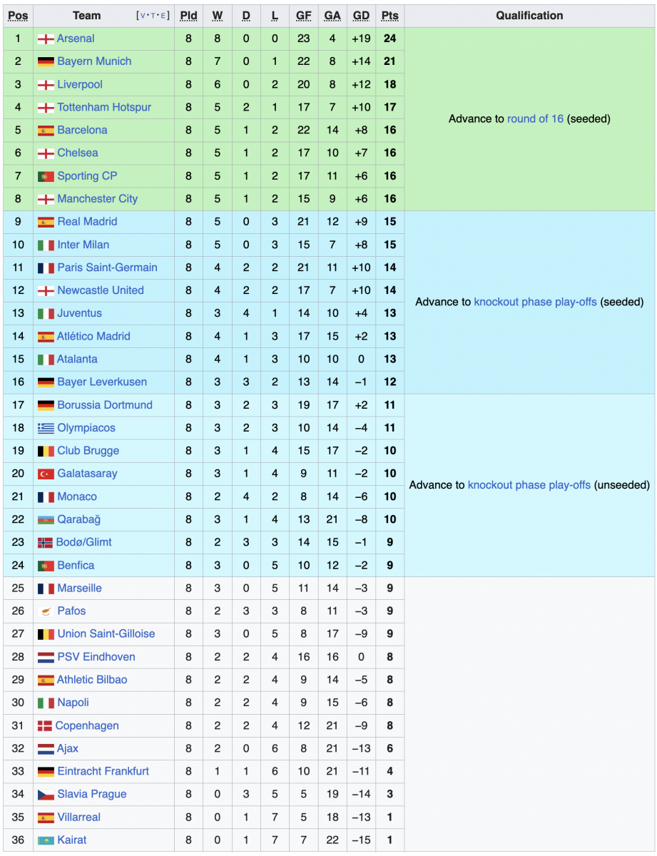 Хөлбөмбөгийн хамгийн нэр хүндтэй тэмцээн болох Аваргуудын лигийн шөвгийн 16 багийн оноолт гарлаа. Тус тэмцээнл Английн 6, Испаний 3, Герман 2, Франц, Турк, Португаль, Норвеги, Италийн багуудаас тус бүр нэг нэг багууд тодорсон байна.